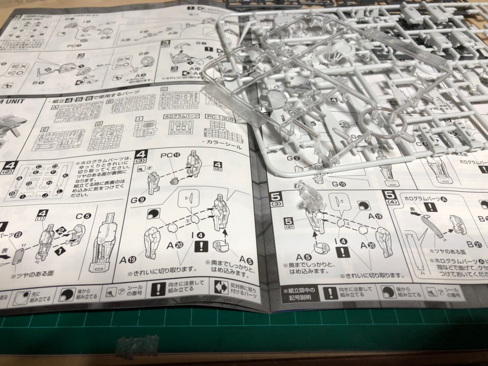 右腕を作っていくのですが、ホログラムパーツとかポリキャップがあってうまい具合にはまらないところがちらほらと。取り付け方がよくないのかなあ。上腕の部分に当たるところ。